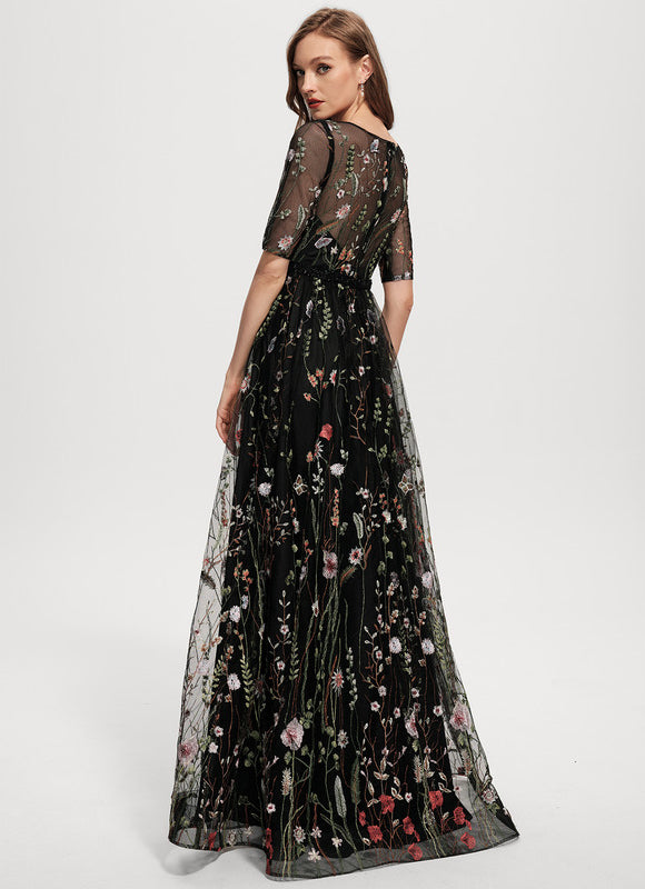 Imaginez-vous glisser dans une tenue qui capture l'essence même de l'élégance et de la féminité. Notre Robe Dentelle Florale Envoûtante est bien plus qu'une simple robe : c'est une œuvre d'art conçue pour sublimer votre silhouette et attirer tous les regards. Idéale pour les mariages, les galas, les soirées chics ou tout événement où vous souhaitez briller, cette robe longue trapèze vous offre une allure gracieuse et un confort absolu. Son tissu délicat en dentelle, brodé de motifs floraux vibrants et parsemé de perles scintillantes, crée un jeu de lumière et de texture qui vous fera vous sentir unique et irrésistible. Préparez-vous à vivre des moments inoubliables en toute confiance.Le Charme Unique de notre Robe Dentelle Florale Envoûtante
