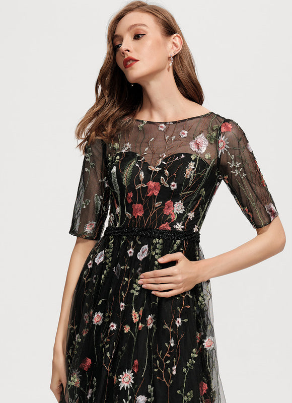 Chaque détail de cette robe a été pensé pour vous offrir une expérience vestimentaire exceptionnelle. La coupe trapèze flatte toutes les morphologies, épousant délicatement la taille avant de s'évaser avec fluidité jusqu'au sol, assurant une silhouette élancée et élégante. Le col rond classique apporte une touche de sophistication intemporelle, tandis que les manches mi-longues en dentelle illusion révèlent subtilement la peau, ajoutant une dimension de mystère et de raffinement. L'attention portée aux finitions se manifeste par la doublure complète qui garantit opacité et confort, ainsi que par le soutien-gorge intégré qui offre un maintien parfait sans nécessiter de sous-vêtements supplémentaires. Le dos illusion, orné de la même dentelle florale, complète harmonieusement ce design captivant, faisant de cette Robe Dentelle Florale Envoûtante un véritable bijou de votre garde-robe.Caractéristiques Clés de votre Robe Dentelle Florale Envoûtante