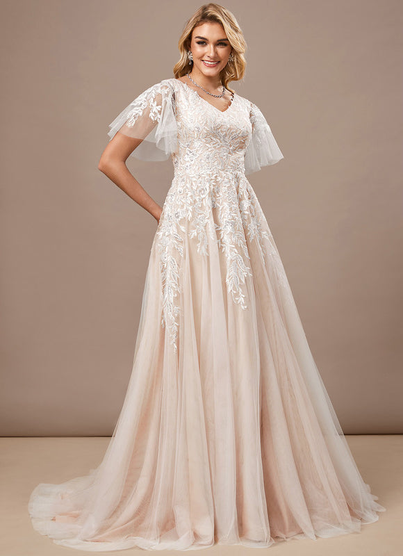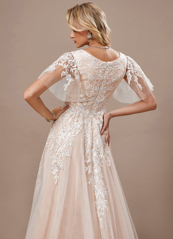 Chaque détail de cette robe a été pensé pour votre grand jour. Le tissu en dentelle de haute qualité offre une texture riche et un motif floral raffiné qui s'étend gracieusement sur la robe. Les paillettes discrètement intégrées ajoutent une touche de glamour sans jamais être excessives, juste assez pour vous faire scintiller. Sa forme trapèze assure une silhouette fluide et aérée, idéale pour se déplacer librement et avec aisance. Le col V met subtilement en valeur le décolleté, tandis que le soutien-gorge intégré assure un maintien parfait et une confiance absolue. Le zip arrière garantit un enfilage facile et un ajustement impeccable, vous permettant de vous concentrer uniquement sur la joie de votre union.