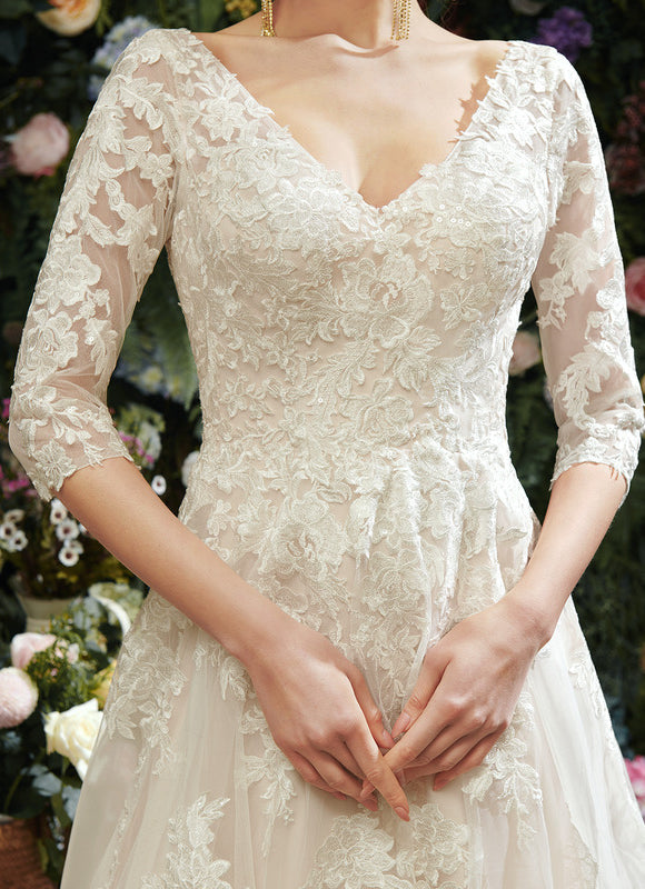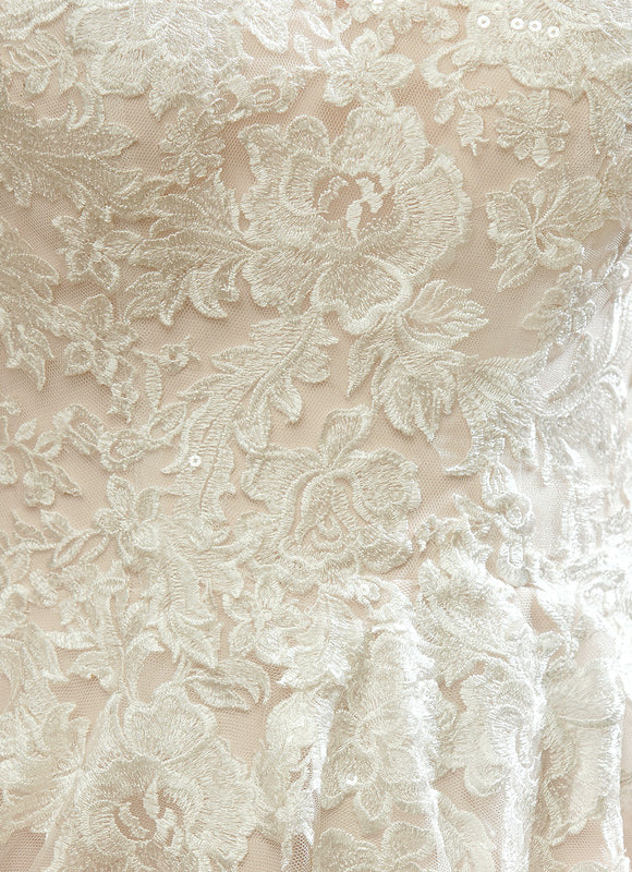 - Éclat Subtil : Les paillettes discrètement intégrées à la dentelle ajoutent une touche de brillance sans être ostentatoires, parfaites pour les photos et les moments mémorables.